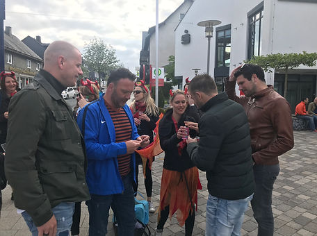 Na een geslaagd minitournooi met pro-sets was het tijd om een hapje te gaan eten bij de Irish Pub, om vervolgens al lopende door het Centrum van Winterberg verrast te worden door twee groepen 'vrijgezellige dames', waarmee de heren allerlei opdrachten moesten uitvoeren.